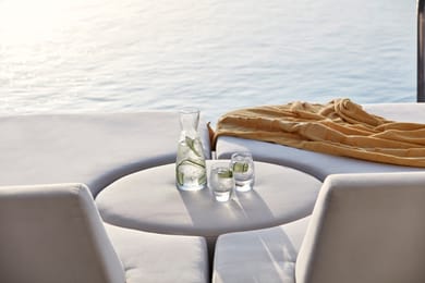 A striking suite with excellent detailing; spacious in every sense, with an elegant mix and match of fine furniture and lighting, exquisite fabrics, designers’ artwork and a breathtaking view over the coastline and its majestic surroundings.