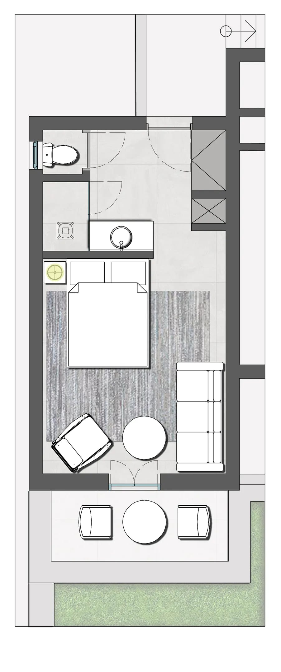1 queen size bed and 1 sofa bed, Garden View facing the Building 3 and one of the rooms has mountain view.